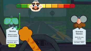You're a cat trying to get your driving license from the leery instructor. Distract him by equipping several masks to look like a human! Be careful though, some masks may hinder your vision especially.